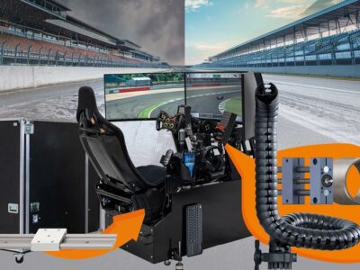 Brytyjska firma Greaves 3D Engineering opracowała profesjonalny symulator samochodu wyścigowego o nazwie „The Ultimate Drivers Rig”, który można szybko złożyć i przechowywać w skrzyni transportowej. Ułatwia to transport na tory wyścigowe, targi i imprezy firmowe. Aby ograniczyć prace konserwacyjne podczas podróży, inżynierowie polegają na wytrzymałej i bezsmarowej technologii liniowej oraz napędowej, a także na prowadnikach kablowych i łożyskach ślizgowych firmy igus.